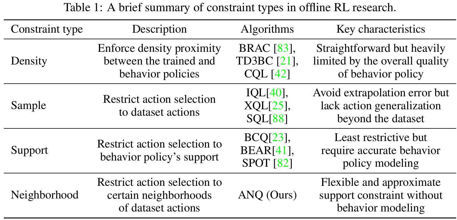 This work aims to address the over-conservatism of the density and sample constraints while avoiding complex behavior modeling required by the support constraint.
