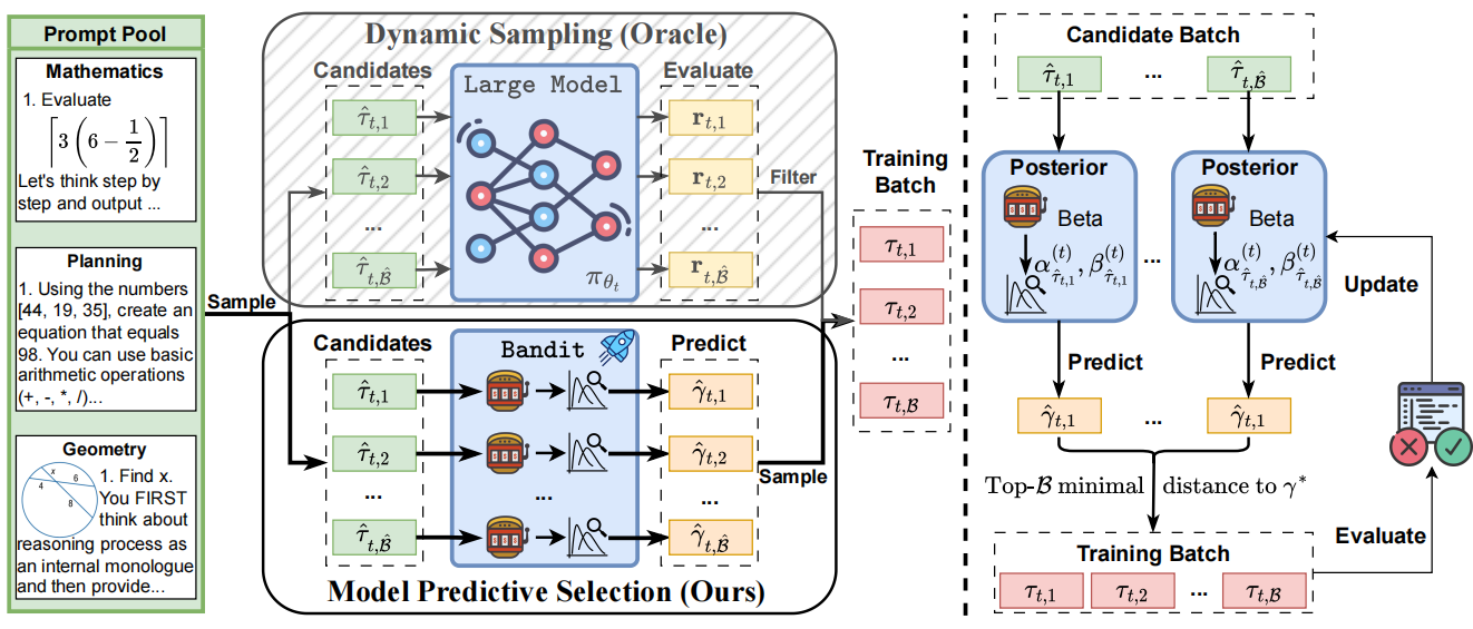 This work introduces Model Predictive Prompt Selection, a Bayesian risk-predictive framework that online estimates prompt difficulty without requiring costly LLM interactions.
